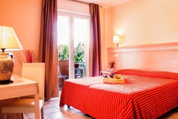 Dispone di 146 camere (di cui 3 comunicanti con occupazione minima di 4 persone), tutte dotate di servizi privati con doccia, aria condizionata, telefono con linea diretta, TV satellitare con pacchetto base, frigobar (servizio rifornimento a richiesta nelle camere standard), asciugacapelli, cassetta di sicurezza. Tutte hanno un balconcino privato ed attrezzato con tavolo e sedie, che affaccia lato piscina o lato collina. Le camere quadruple hanno letto a castello oppure lettino e pouf (bambini fino ai 10 anni e riduzione degli spazi). Le camere quintuple hanno letto a castello + pouf (bambini fino ai 10 anni). Le camere comunicanti possono essere due camere doppie o triple, ognuna con proprio ingresso e proprio bagno.