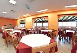 A disposizione dei clienti una sala ristorante con tavoli assegnati, climatizzata e pasti con buffet servito, anche con piatti tipici della cucina locale e mediterranea e pasta fresca fatta in casa, scelta tra due primi e due secondi, buffet di contorni; griglieria a pranzo e cena (si intende, uno dei due Secondi in menù è cucinato alla griglia); pizzeria napoletana, sempre a buffet (solo per la cena). Frutta e gelato a pranzo, dolce e frutta la sera. Lunedì sera e mercoledì piatto a sorpresa.  Per i bimbi del miniclub merenda pomeridiana in compagnia dello staff di animazione. Per i piccolissimi ospiti da 0 a 3 anni, a disposizione:
